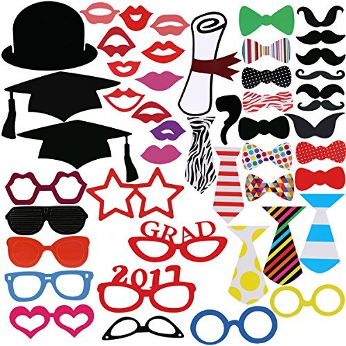 -. Title : OULII Graduation Party Photo Booth Props, 2017 Graduation Party Decorations Party Favor for Wedding Party Graduation Birthdays Dress-up Accessories, ATTACHED TO THE STICKS,Pack of 46