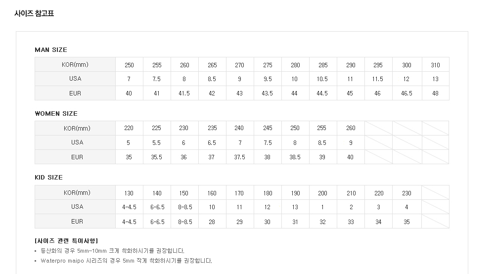 사이즈정보