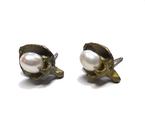 These Beautiful Earrings by Michael Michaud are cast in a mold made directly from a real Callery Pear flower in order to perfectly capture the form and texture. Each earring has1 White Freshwater Pearl that makes up the bud. Leaves are Hand Patinaed Green Bronze. Posts & backings are Sterling Silver. Measures: 1/2" x 1/4" long. Item is brand new and comes in a lovely gift box.Feature