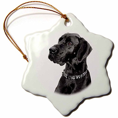 3drose Black Great Dane Snowflake Porcelain Ornament, 3-Inch
