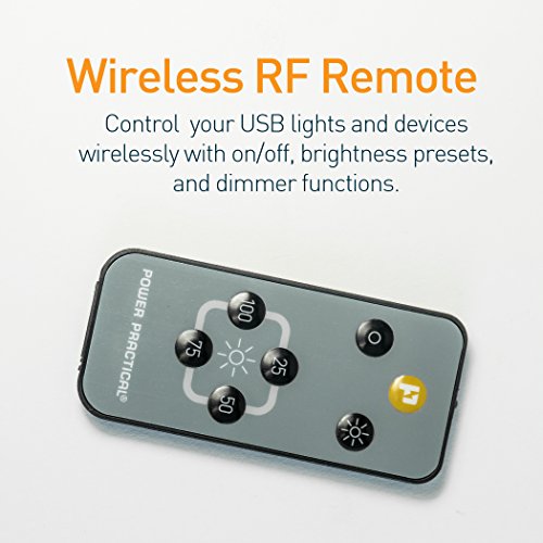 INCLUDES: A simple and intuitive in-line USB switch with on/off and dimmer capabilities and a wireless RF remote. Compatible up to 10W (5V, 2A). This USB port switch makes your USB devices, including Luminoodle Bias Lighting and Luminoodle LED Rope Light easier to use and more customizable. *Not meant for data transfer or phone charging*