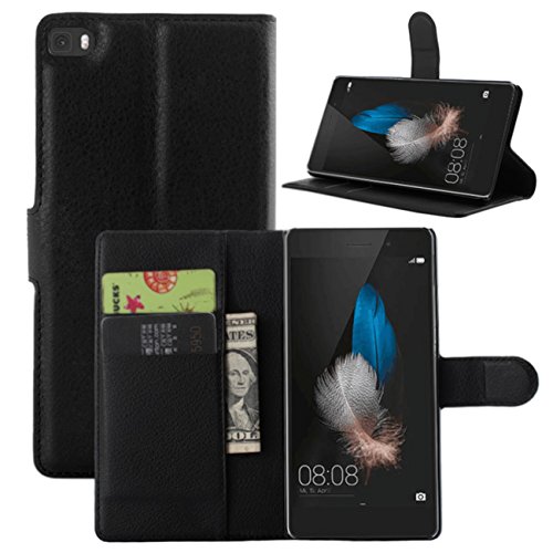 Huawei P8 Lite Case, Fettion Premium PU Leather Wallet Phone Cases Flip Cover with Stand Card Holder for Huawei P8 Lite Smartphone (Wallet - Black)