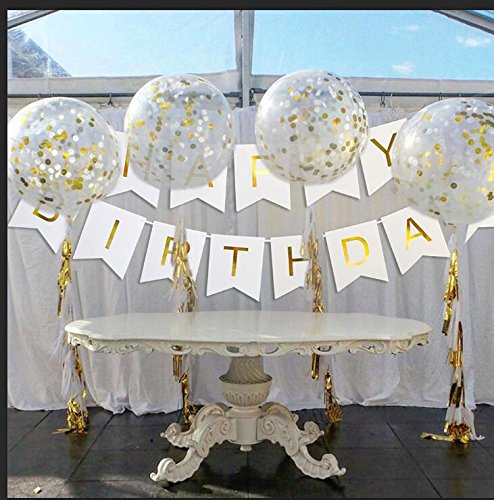 -. Feature : Happy Birthday Banner & Confetti balloons: Apply to multiple party themes, elegant and versatile decor. / 13 Pennants with single letter that spell the phrase "HAPPY BIRTHDAY", with extra 5 Confetti balloons, which will greatly enrich your birthday party. / Happy Birthday Banner (Approx. 2.5m in Length), Confetti balloons (Inflatable diameter is approx. 30.5 cm/ 12 inches). / High-quality: Banner is made with Pearl paper & hand-strung with plenty of extra ribbon for easy hanging. / What you get: 13 letter pennants, 2 strands, 10 Confetti balloons(sticks aren't included)..