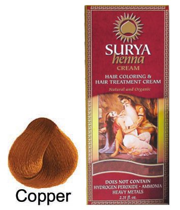 Henna Copper Cream by Surya Nature Inc 2.31 oz Cream Henna Copper Cream 2.31 oz Cream Product Winner of the Best of Natural Beauty Awards Surya Brasil's high performance Henna Cream Color is an anti-oxidant rich semi-permanent hair color that infuses hair with lush vibrant color while nourishing with sustainably harvested botanicals. Every shade of Surya Brasil's sophisticated natural color contains vegetable extracts including herbs and fruits from Brazil and India which offer simultaneous coloration and deep conditioning treatment for the hair as well as intense treatment for the scalp. While coloring gray on first application Surya Brasil Henna Cream Color does NOT contain ammonia PPD parabens peroxide resorcinol heavy metals artificial fragrance mineral oils GMO's or gluten. Like all of Surya Brasil's products the Henna Cream is 100 vegan and cruelty free. Hair color shade results will vary as will the natural ingredients used in our henna creams and powders. These digitally-rende