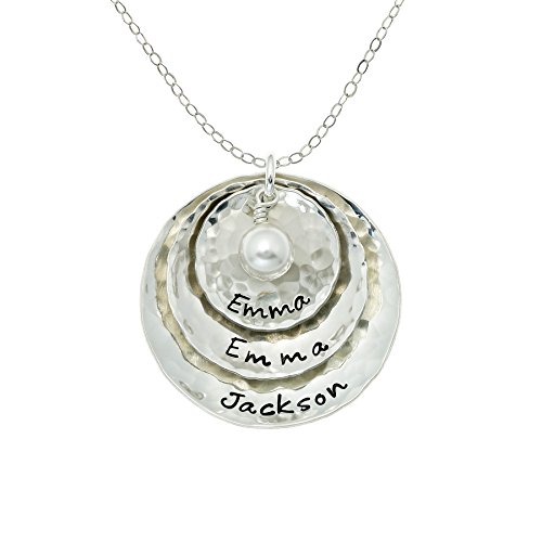 -. Title : Tripio Personalized Sterling Silver Necklace with 3 Customizable Discs, Hand Finished and Adorned with a Swarovski Pearl. Choice of Sterling Silver Chain. Gifts for Her, Mother, Grandmother, Wife
