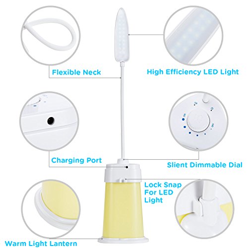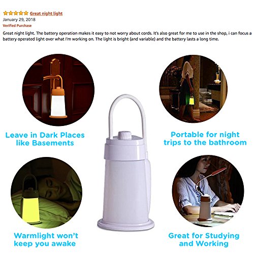 - READING LIGHT AND CAMPING LANTERN - Can easily switch between small desk lamp, bedside lamp, night light, kids reading light, and even bathroom lamp for late night trips. This lamp is multi use, portable, USB rechargeable, gives off warm or white light as a bedside reading lamp or desk lamp. One of the best LED camping lights.