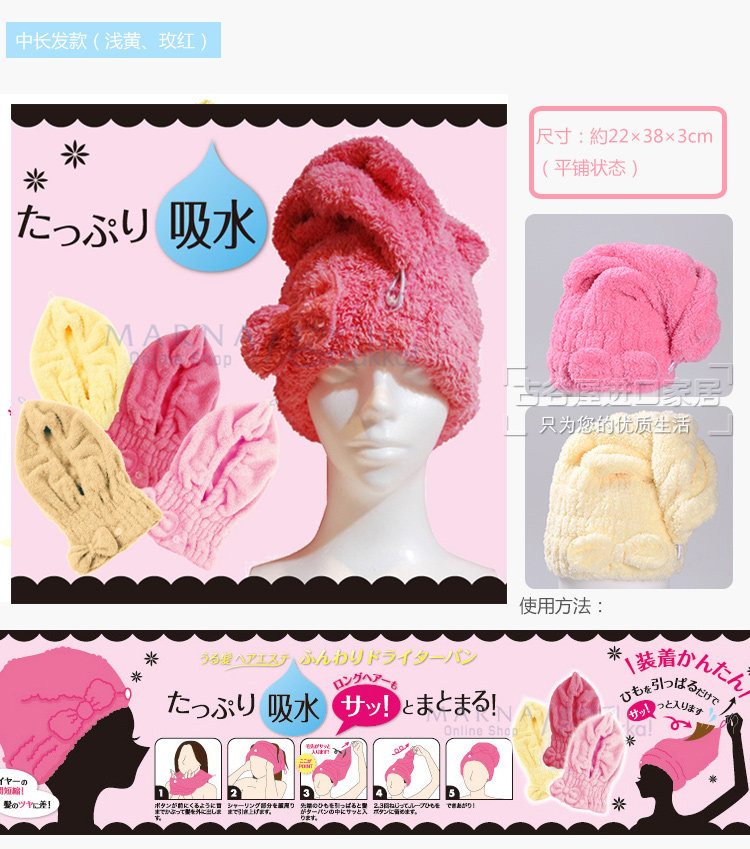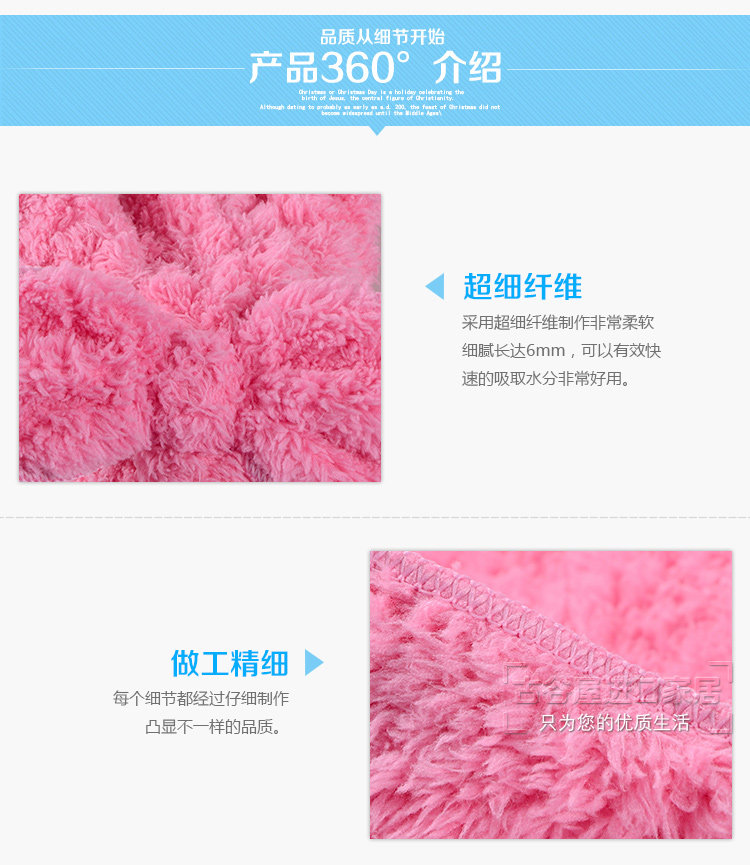 Recommended: use of quality microfiber plush fabric] [fine fiber is also thinner than the natural silk, [it does not contain any chemical composition,] between microfibers having many fine voids, with high water absorption, so that the hair dry [fast. water amount] equivalent to 7 times the normal fibers [water] is seven times the speed of ordinary towels, [fiber] is five times the normal strength fibers. [Three optional specifications, children and adults alike can use. ]