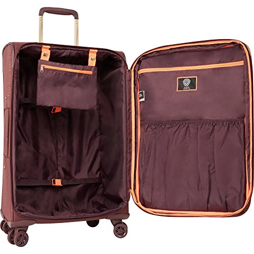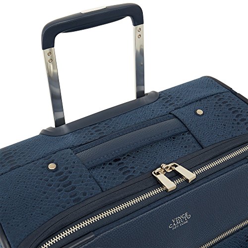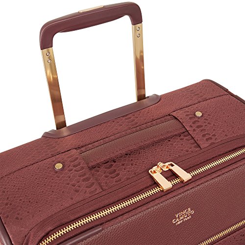 Product Description Structured and sophisticated, The Vince Camuto Ameliah Collection is perfect for the refined fashionista. The timeless elegance of this luggage set will last for countless travels. Polyester "python" jacquard Aluminum push-button locking trolley handle Epands for added packing capacity Eight wheel spinner system Top and side carry handles Two exterior zippered pockets Fully lined interior with organizational pockets and adjustable valet straps 5 year warranty ID: 2850 Dimensions: 24" Expandable Spinner Suitcase - 24" x 16" x 9" - 8.3 lbs 0