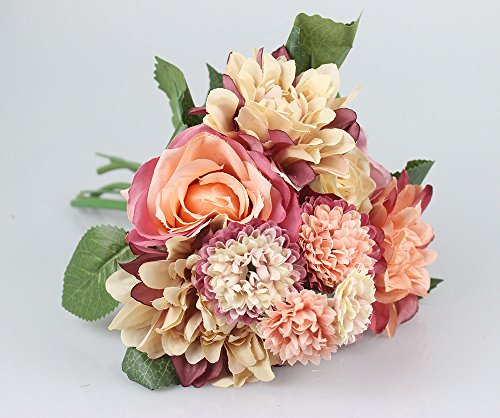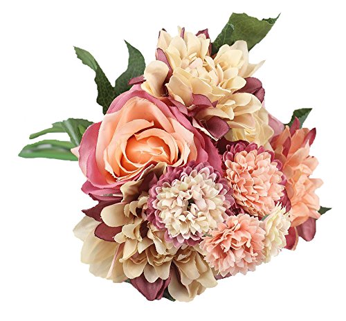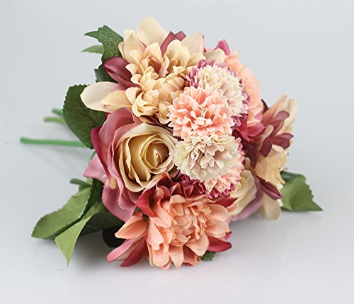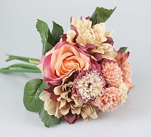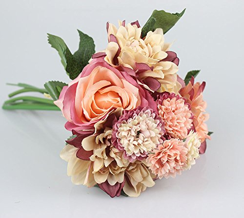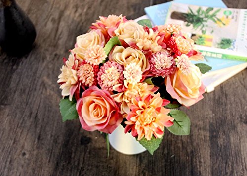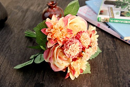 Arbeflo Bridal bouquets, bouquets of artificial roses, suitable for weddings, churches, parties and home decor (Orange)