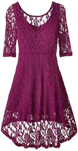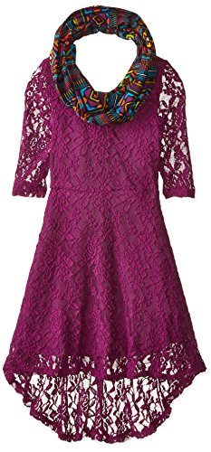 Emily West Big Girls' 2 Piece Set Purple Lace Hi-Low Dress with Infinity Scarf, Purple, 8