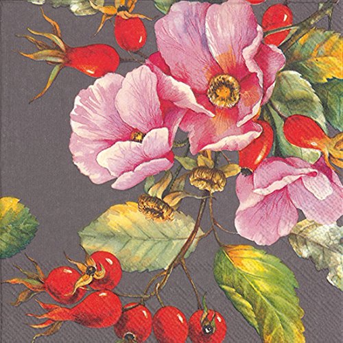 Ideal Home Range 20 Count Wild Rose Grey Paper Luncheon Napkins, Gray