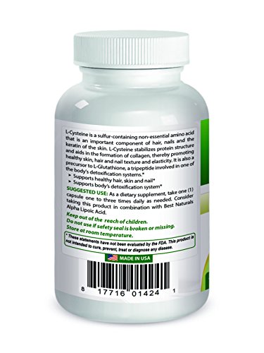 L-Cysteine is a sulfur-containing amino acid that helps synthesize keratin, a protein found in skin, hair and nails. It is also a precursor to L-Glutathione, a tripeptide involved in one of the body's detoxification systems. This product provides Free Form L-Cysteine to promote optimal absorption and assimilation.
