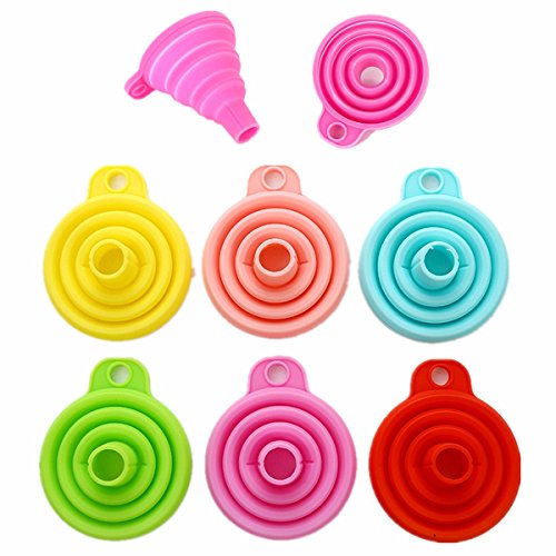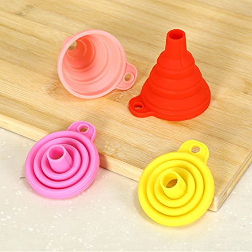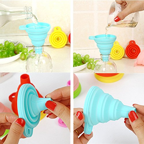 Color & Size : Kitchen funnel for cooking have 6 different colors, these beautiful colors immediately let your kitchen light up. One folding funnel has a diameter of 6.4cm and a height of 7.6cm, which is large enough for any place in the kitchen.