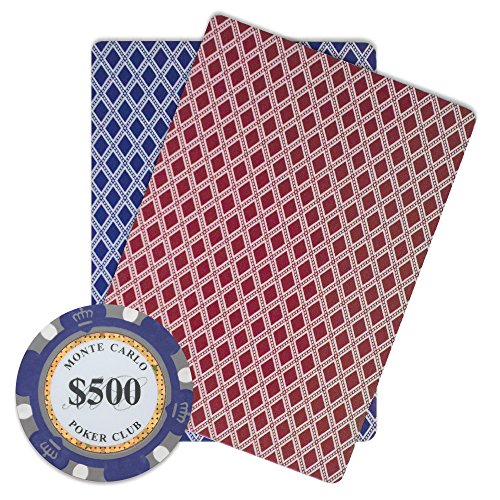 These 14 gram Monte Carlo clay poker chips will bring the look and feel of a casino card room to any home game. A unique and attractive edge design surrounds an inlay that displays the denomination of each chip, the words "Monte Carlo Poker Club", and a dazzling laser graphic strip that makes these chips sparkle and shine. These chips are eye-catching as well as classy.