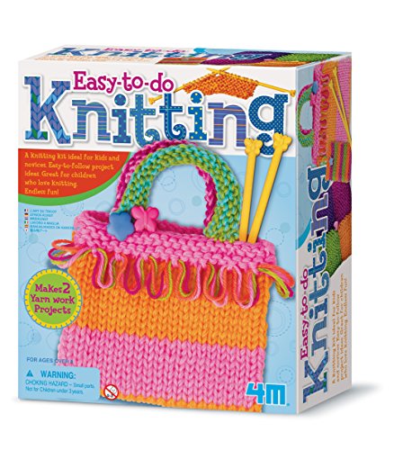- This fun and educational set includes plastic kitting needles, a detailed instruction manual, and enough yarn to make your own mini hand bag, pillow, and ipod case.