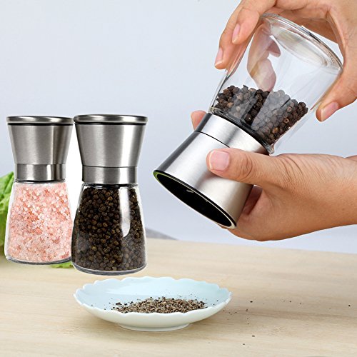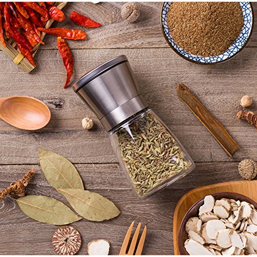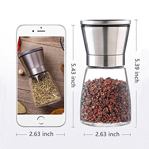 - SO FRESH SO CLEAN:Any chef knows that nothing tastes quite as good as freshly ground spices.Our salt pepper grinder crafted with the premium, rustproof stainless steel,BPA free plastic and crystal clear glass.The airtight lids maintain maximum flavor and quality so your spices lasting longer.