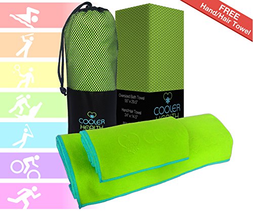 Luxury Microfiber Towel – Oversized Bath Towel + FREE Hand / Hair Towel & FREE Compact Bag - Super Soft - Absorbent - Fast Drying – Large Set Best for Gym Beach Yoga Travel
