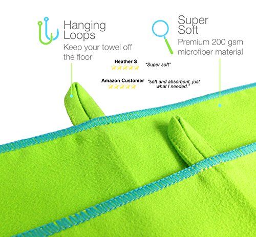 ✔ FAST DRYING & ABSORBENT: Microfiber air dries 3 TIMES FASTER than cotton towels. And can absorb up to 7 TIMES its own weight in water. The towel also resists going stale and smelling bad in case you forget to hang it up.
