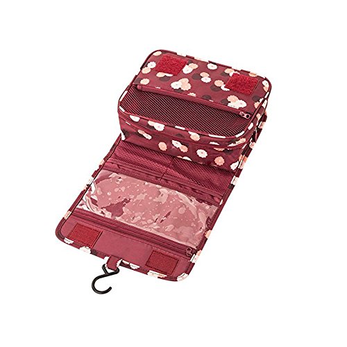 Onerbuy Hanging Travel Toiletry Organizer Bag Portable Cosmetic Makeup Pouch Multifunction Bathroom Storage Carry Case with Hook & Velcro (Wine Red)