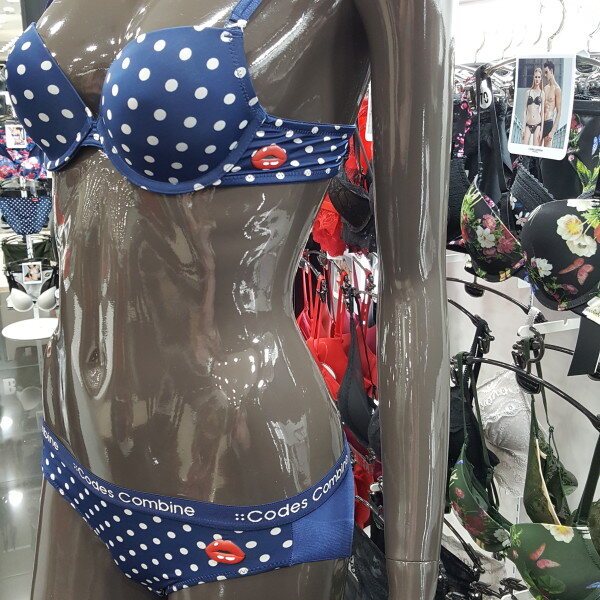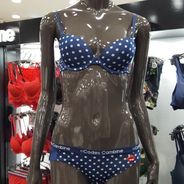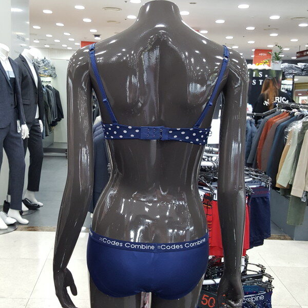 전체 도트 문양에 입술로 포인트 된 코데즈 브라팬티세트 입니다. 팬티 뒷면은 햄라인의로 처리되어 있어서 바지나 원피스 착용시 힙라인을 매끈하게 잡아 줍니다.