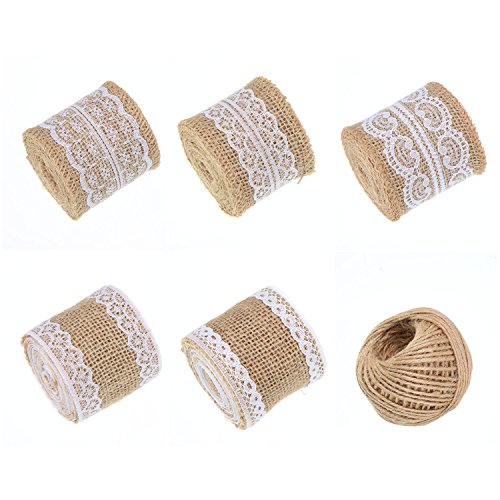 - Quantity – The package includes 5 rolls of natural burlap with different patterned lace and 1 roll of twine, enough for you to make various kinds of arts crafts