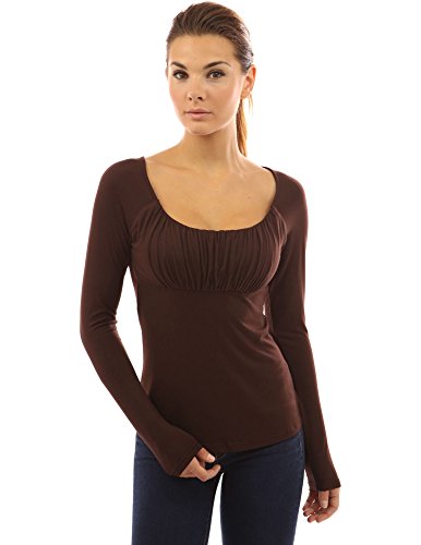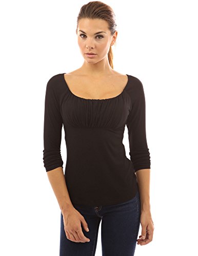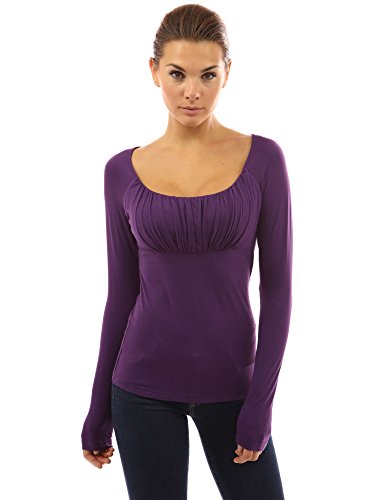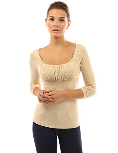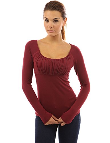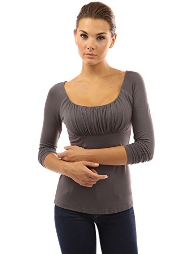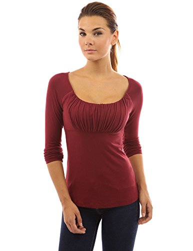 Scoop Neck Ruched Gathered Raglan Long Sleeve Blouse Top. Model in pictures is 5 feet 8 inches (173cm) tall.