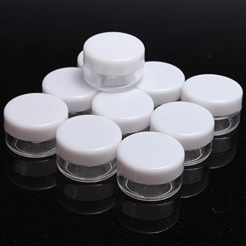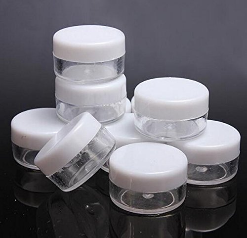 25PCS Empty Plastic Round Shaped Cosmetic Bottles-Make Up Eye Shadow Nails Powder Storage Containers Jar Pot With White Screw Cap(Transparent) (3G)