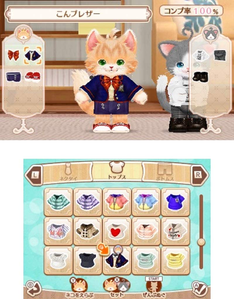 やりこみポイントいっぱい! きせかえできる服は450以上、もようがえできる家具は約100、ネコのあそび道具90以上、釣れる魚や育てられる植物も大ボリューム収録!