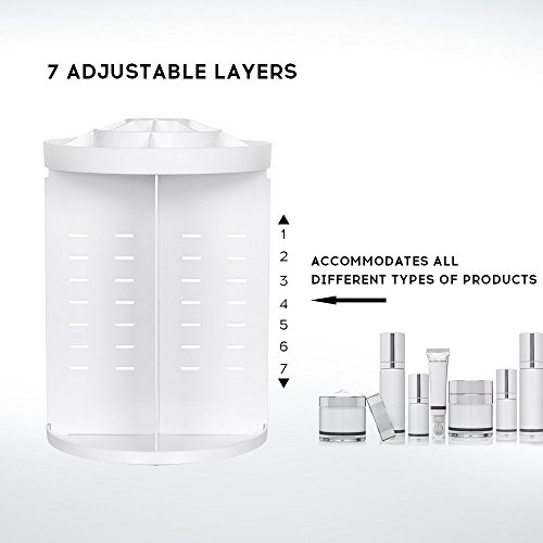 ADJUST THE SHELVES TO FIT YOUR PERSONAL NEEDS - Large Capacity with adjustable 7 Layers according to all size of your items. You can buy more now, Toner, Creams, Makeup Brushes, Lipsticks, Perfume and more, without any mess.