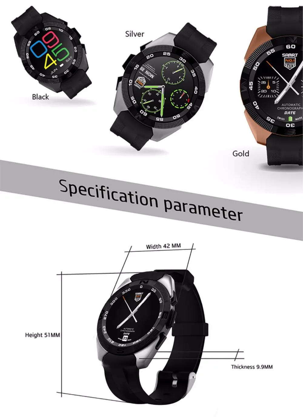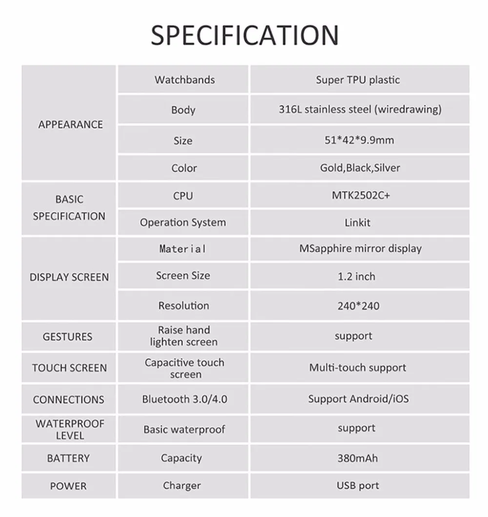 Function:Answer Call,Remote Control,Dial Call,Push Message,Passometer,Message Reminder,Sleep Tracker,Heart Rate Tracker,Call Reminder