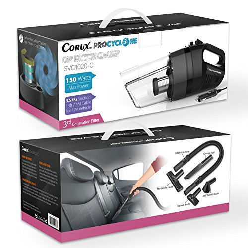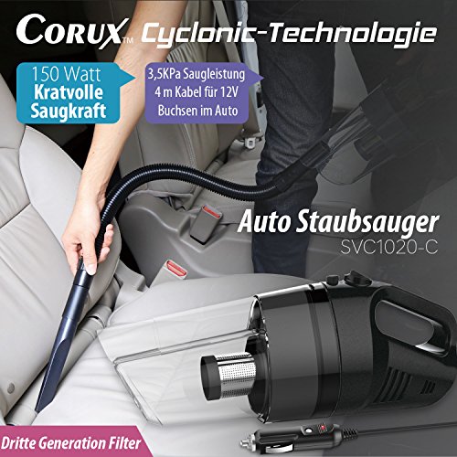 IntiPal Corux Auto Staubsauger 150 Watt 12V Handstaubsauger Autostaubsauger 3.5 Kpa mit 4M Kfz-Adapterkabel und Tasche