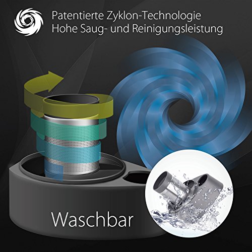 STARKE SAUGLEISTUN: Cyclonic Action Technologie sorgt fur langanhaltend hohe 150 Watts Saugleistung und Schmutzaufnahme