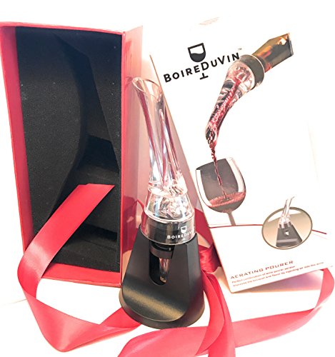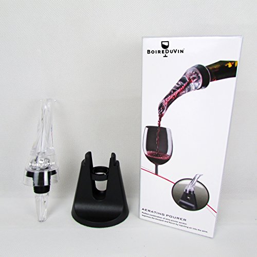-. Brand : BoireDuVin -. Color : Clear with Black base -. EAN : 0747850528512 -. Feature : ~IMPROVES THE TASTE OF AGED WINE - Double Air intake allows fast air flow to oxygenate the wine allowing it to breath as soon as it is poured into your glass. You will be amazed by the smooth taste. / ~RIBBED FITTING SEALS THE AERATOR ONTO THE WINE BOTTLE FOR EASY POURING - just gently push the aerator onto the top of the bottle once opened and "Voila" you are ready to enjoy a glass of wine immediately and effortlessly. The aerator stays on the bottle ready to pour the next glass. / ~WINE STAND FOR EASY STORAGE WITH AN ANTI LEAK GUARD TO SAVOR EVERY SIP - no more spilled "wine" and the stand holds your aerator when not in use and allows for easy access when needed. / ~FDA APPROVED - MADE OF STRONG ACRYLIC- Superbly Designed at a 150 Degree tilt to allow the wine to receive the right amount of oxygen for the perfect glass! / PERFECT GIFT FOR ANY OCCASION!! ** STAFFERS TIP ** - Enjoy a side by side comparison using the aerator in 1 glass and without using the aerator in another. This will give you the full experience of "Tasting" like a PRO - the senses of Sight (Color can tell you about the age of the wine) Smell (will remind you of certain aromas or fruits) and Taste: (is it sweet, bitter, acidic); All of these senses will help you evaluate and appreciate the wine. -. Label : BoireDuVin -. Manufacturer : BoireDuVin -. PackageQuantity : 1 -. ProductGroup : Kitchen -. ProductTypeName : KITCHEN -. Publisher : BoireDuVin -. Studio : BoireDuVin -. Title : Wine Aerator Pourer w/ Stand by BoireDuVin - Superb quality Aerator -Excellent Wine Decanter for the best tasting wine in every sip -. UPC : 747850528512