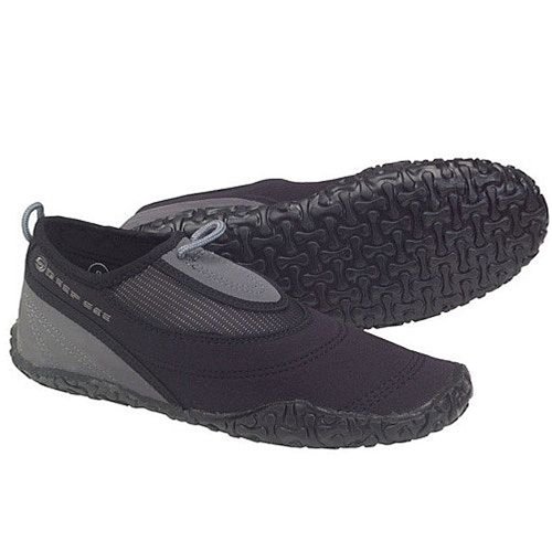 This light-weight water shoe is made from a closed cell rubber with mesh gusset and reinforced polysuede panels. The flexible non-slip rubber sole is non marking and provides excellent traction even on slippery surfaces. The shoe is a slip on style with finger loops and provides protection for warm water activities. This shoe is available in men's, women's and children's sizes.