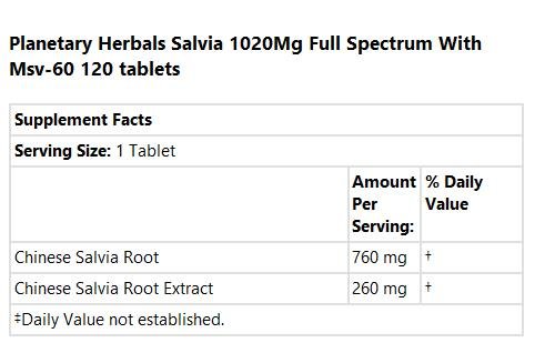-. Feature : Full Spectrum / Herbal Supplement / Approved by Michael Tierra L.Ac, O.M.D / Planetary Herbals, Salvia, 1,020 milligrams, 120 Tablets