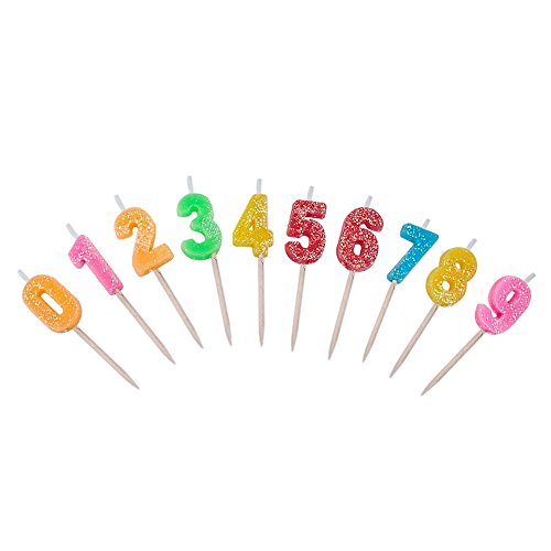 Multicolor happy birthday candles, 0-9 molded number candles for party time special day funny candles make a wish candles for adults and Kids-Willcan brand (Multicolor with glitter)