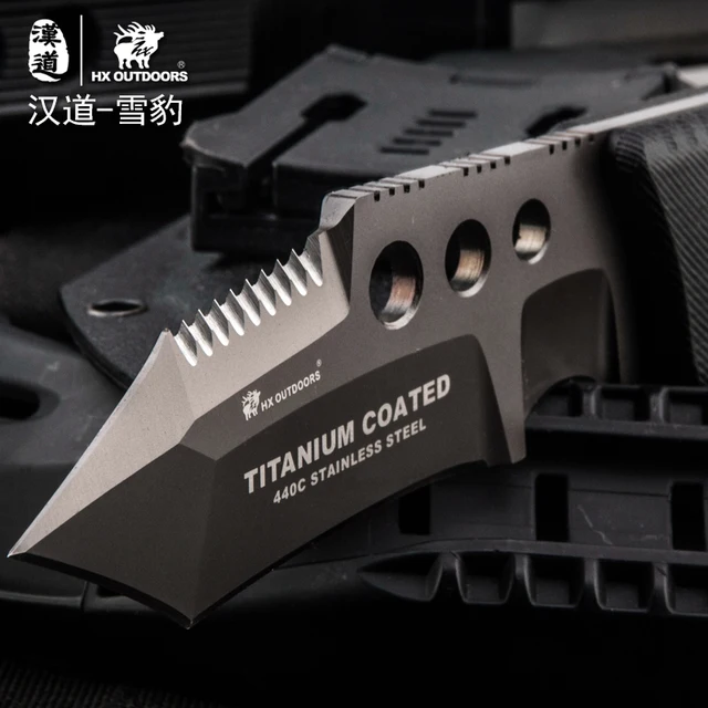 | [해외] HX 야외 사냥 칼 표면 도금 티타늄 고정 블레이드 브랜드 생존 포켓 캠핑 손 도구 멀티 전술 나이프 |