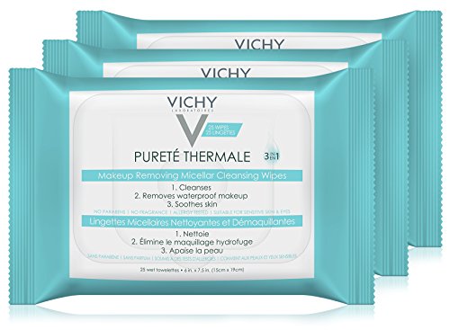 Vichy Purete Thermale 3-in-1 Makeup Remover Wipes with Micellar Cleanser Water & Vitamin E, 3-pack, 75 ct.