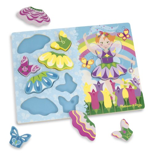 -. Artist : Melissa & Doug -. Binding : Toy -. Brand : Melissa & Doug -. Department : baby-girls -. EAN : 0067625104391 -. Feature : Made using the highest quality materials / Tested to be safe and durable / Great fun for your baby and child / Extra-thick pieces make this wooden puzzle just right for toddlers / Mix-and-match puzzle pieces let kids create their own fairy outfits / Easy to handle and adorable, too / Sturdy wooden puzzle board for guidance during playtime and easy storage afterward / Great for fine motor skills, hand-eye coordination and creativity -. IsAdultProduct : 0 -. Label : Melissa & Doug -. Manufacturer : Melissa & Doug -. Model : 9020 -. MPN : 9020 -. PackageQuantity : 1 -. PartNumber : 9020 -. ProductGroup : Toy -. ProductTypeName : TOYS_AND_GAMES -. Publisher : Melissa & Doug -. Studio : Melissa & Doug -. Title : Melissa & Doug Fairy Dress-Up Chunky Puzzle -. UPC : 000772090209 -. Warranty : No Warranty
