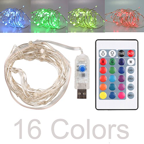 16ft LED USB String Lights 16 Colors Multi Color Changing Copper Wire String Lights with Remote Control Waterproof Decorative Lights for Bedroom, Patio, Garden, Gate, Parties, Wedding, Christmas Tree