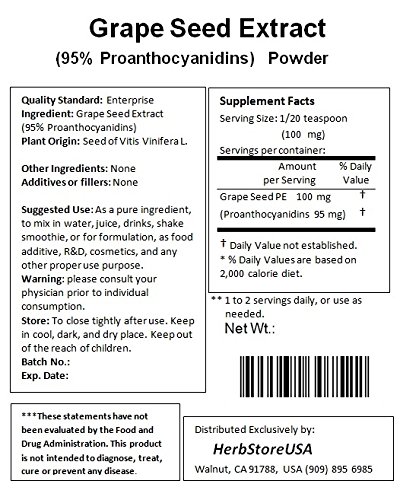 - Title : NuSci Grape Seed Extract Powder 500g (1.1 lb), Standardized 95% Proanthocyanidins