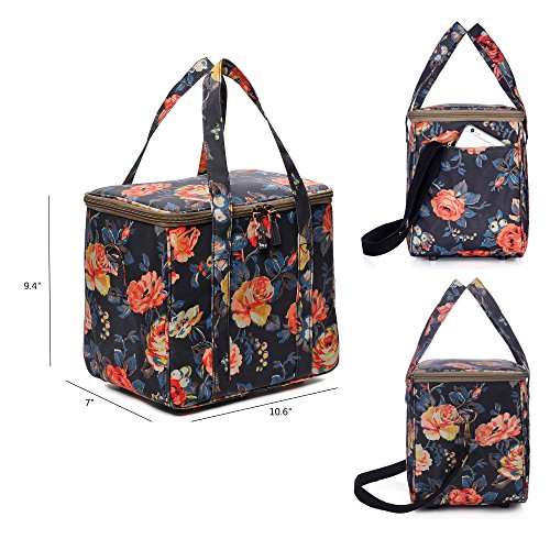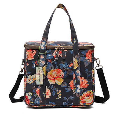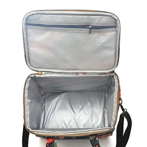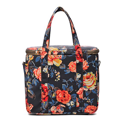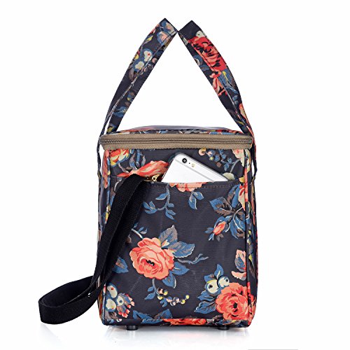 WONDERFUL FLOWER Large lunch bags for women Insulated Picnic Bag lunch Box Bag (G01 Dark Navy)