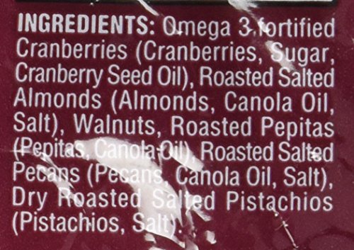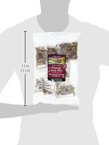-. Feature : Trader Joe's Oh My! Omega Trek Mix is a blend of the most Omega-rich nuts and dried fruit we could find, in one oh-so tasty combination. Almonds, walnuts, pepitas (aka pumpkin seeds), pecans and pistachios make up the nut portion of the mix. For the fruit, we've included omega-fortified dried cranberries-the added omegas in the cranberries actually come from oils extracted from the cranberries' own seeds. You get 560mg of Omega-3s in every serving.