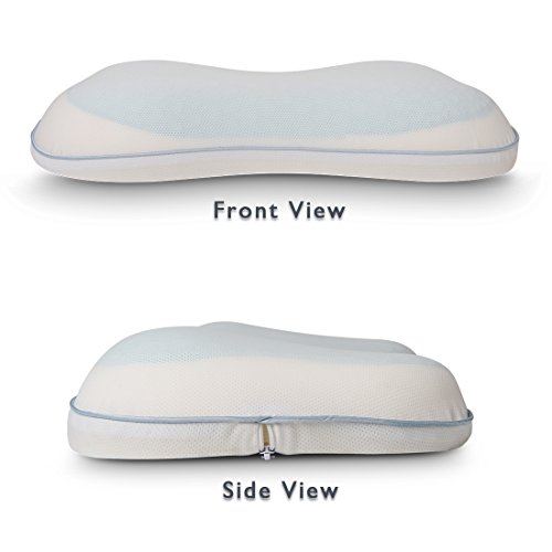 This memory foam pillow with ergonomic contour design correctly aligns the spine by supporting the natural curves of baby's head, neck and shoulders. Two sides of height 2.5" or 2" for option