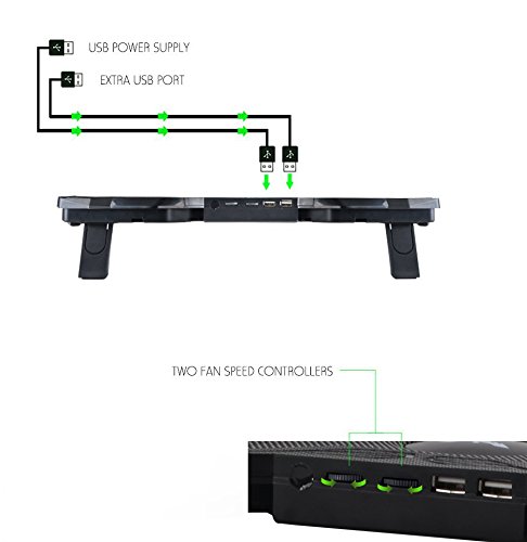 Tree New Bee Cooling Pad for 15.6 - 17-Inch Laptops with Four 120mm Fans at 1200 RPM, Black (TNB-K0025)