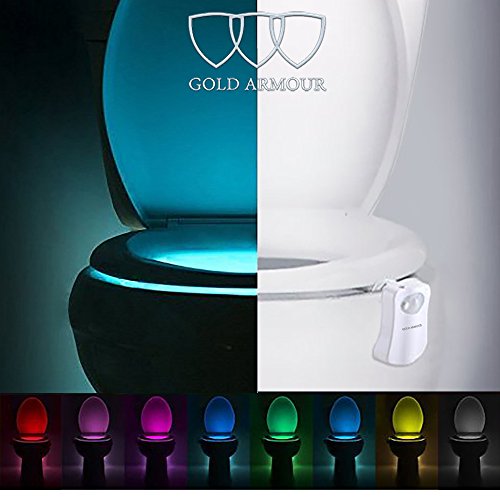 Toilet Night Light , Gold Armour 16-Color Motion Activated Toilet Night Light Toilet Nightlight 16 Color Changing . Great for Potty Training (Only Activates in Darkness)