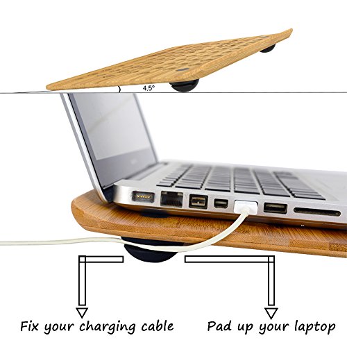 -. Feature : ❤[COMFORTABLE TO USE] Promotes right posture, feels like using a regular table. Ultra lightweight / ❤[THOUGHTFUL DESIGN] Natural Bamboo high quality material, unique design and functionality. / ❤[HEAT PROTECTION] Airflow channel reduces unwanted heat generated by the Laptop/Notebook / ❤[TWO SILICONE BALL] Provides a tilted angle for your laptop to prevent wrist, neck and eye strain, as well as keeps it from sliding down.Also it can hold the cable. / ❤[APPLICATIONS]Compact and portable, suitable for indoor and outdoor use. You can use it on the bed, sofa, floor, desk, or on the lap, and etc.