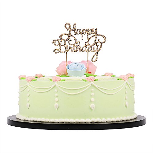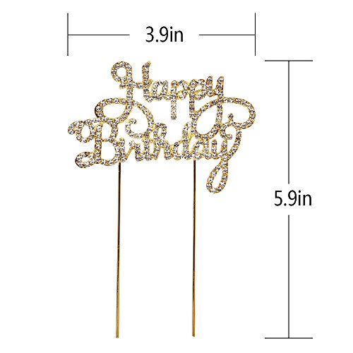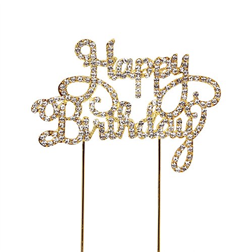 LXZS-BH Gold Metal Rhinestones Happy Birthday Cake Topper Party Decorations