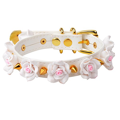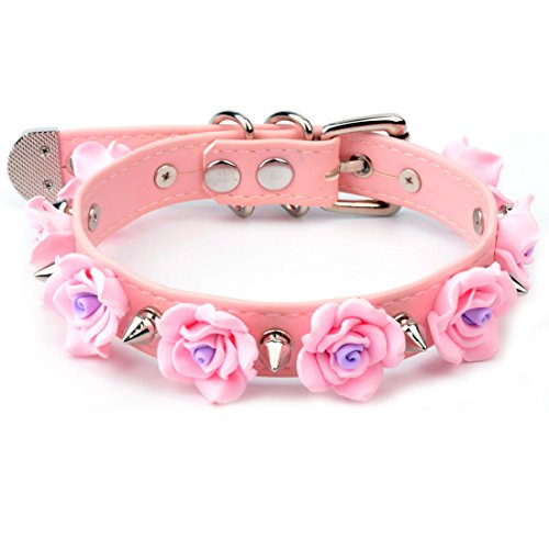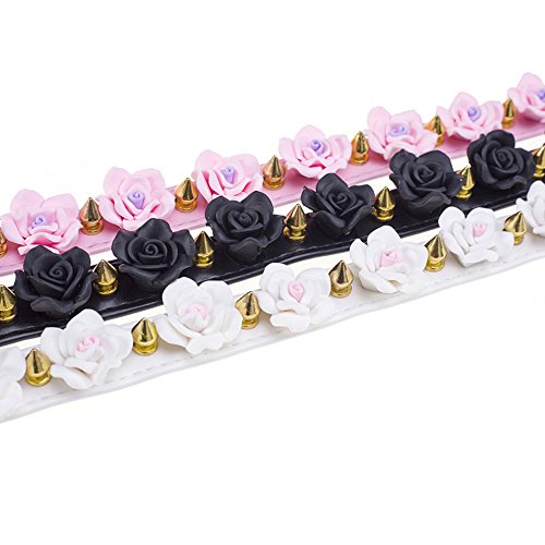 ✔ DETAILS: Rose flowers are made of clay, not plastic. The quality is really impressive. Lolita Cute kitty Choker Collars made from high quality Vegan leather with buckle back closure. comes with cute clay flowers and Spikes. Super Cute, Kawaii and harajuku style.