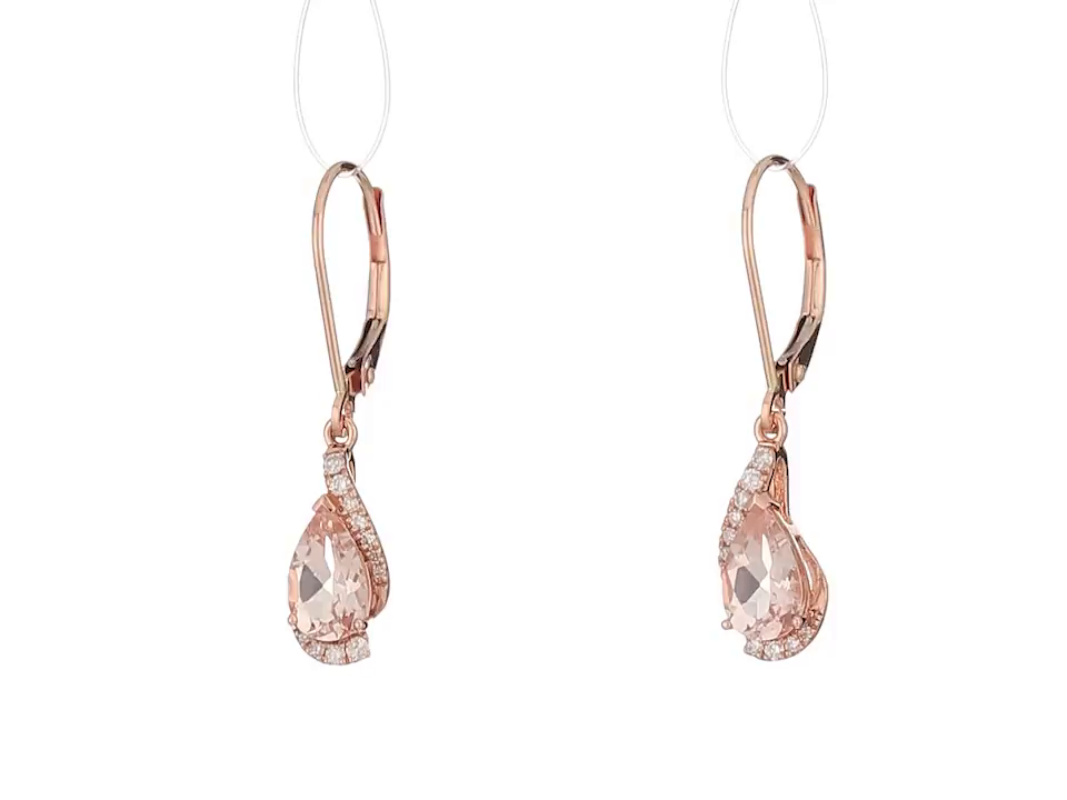 14k Rose Gold Pear Shaped Morganite with Diamond Accent Drop Earrings (1/10cttw, I-J Color, I2-I3 Clarity)